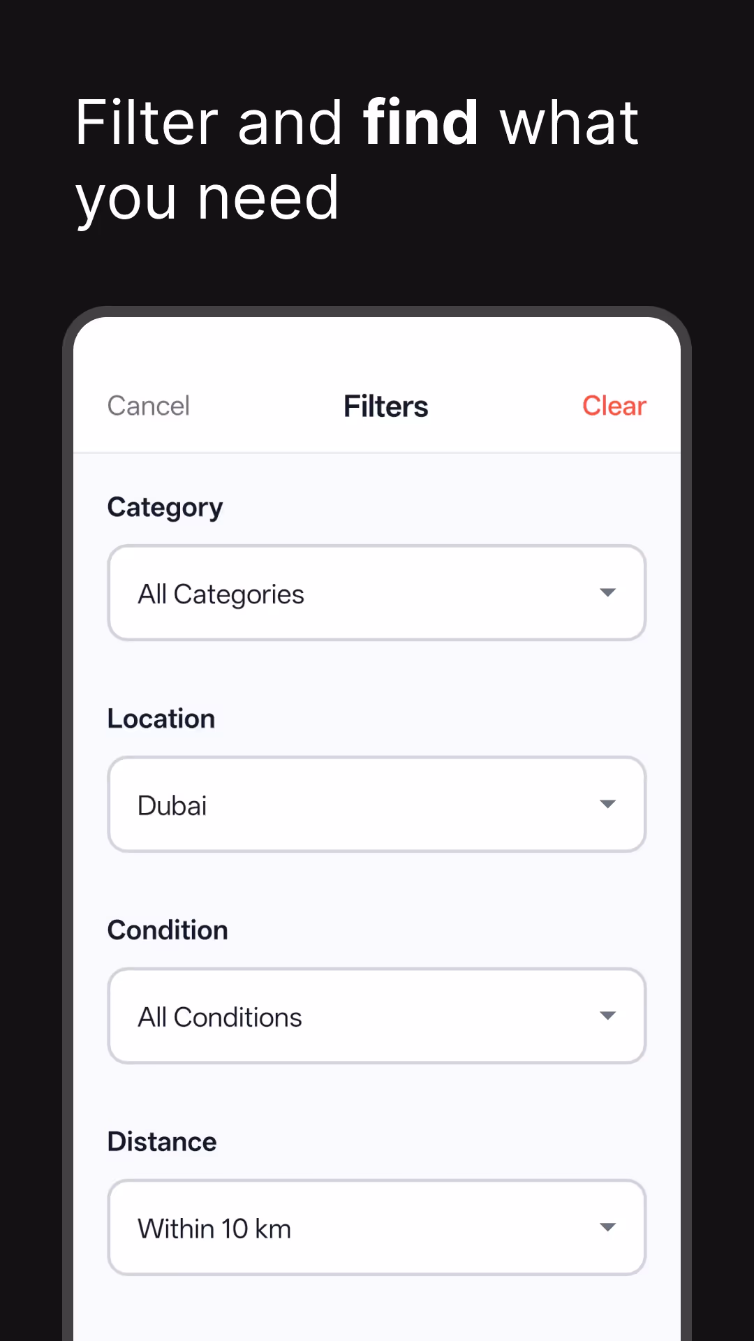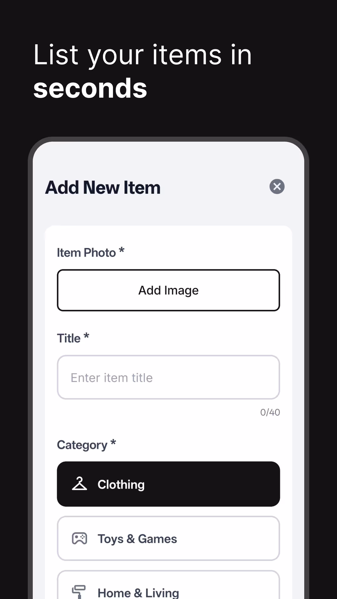 Post in seconds with a photo, title, and category. Smart filters help you find exactly what you need.